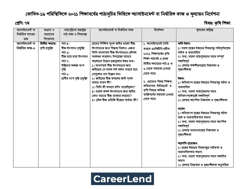 ৭ম শ্রেণির ১৪তম সপ্তাহের কৃষি শিক্ষা অ্যাসাইনমেন্ট